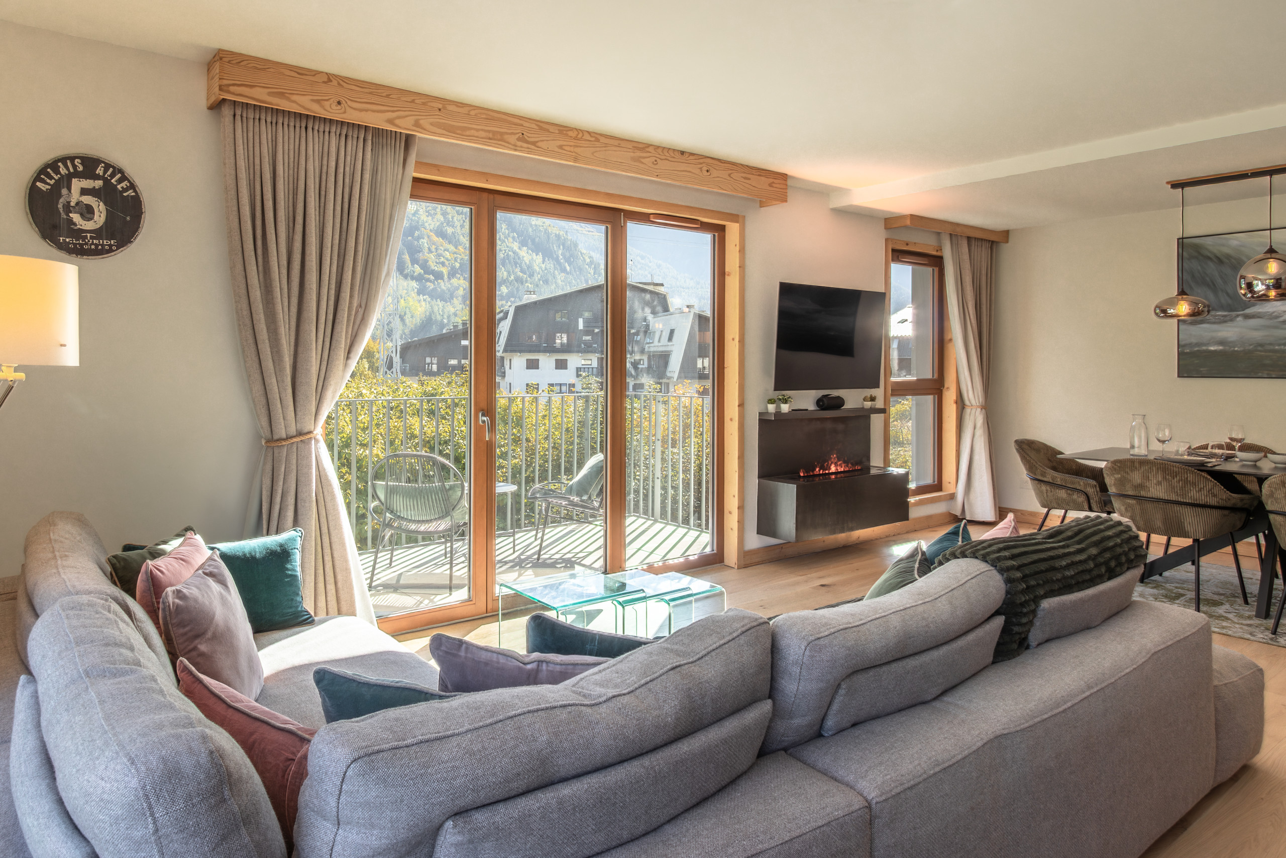 Enjoy the panoramic view of Mont Blanc on a terrace that opens directly onto the Savoy estate.