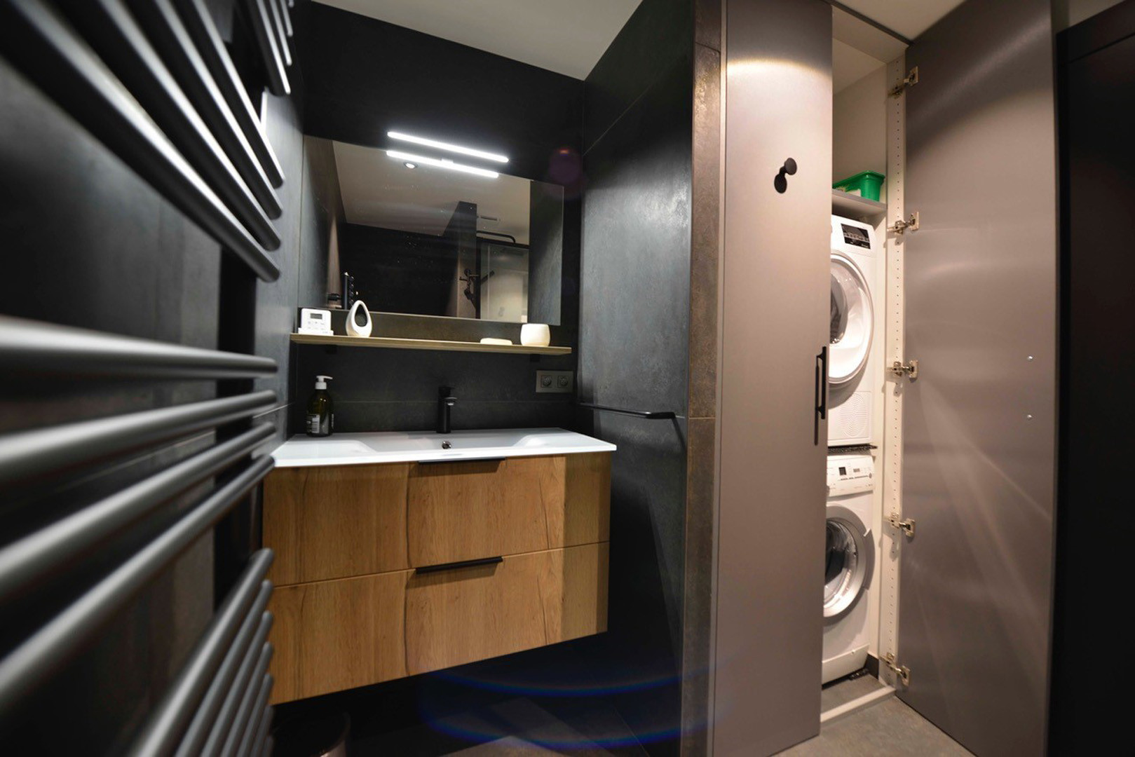 Luxurious 95 m2 apartment with 2 bedrooms, 1 bathroom, a sofa bed that offers great sleeping comfort and a trundle bed. Living room and bedroom with an exceptional view of the MONT-BLANC massif.