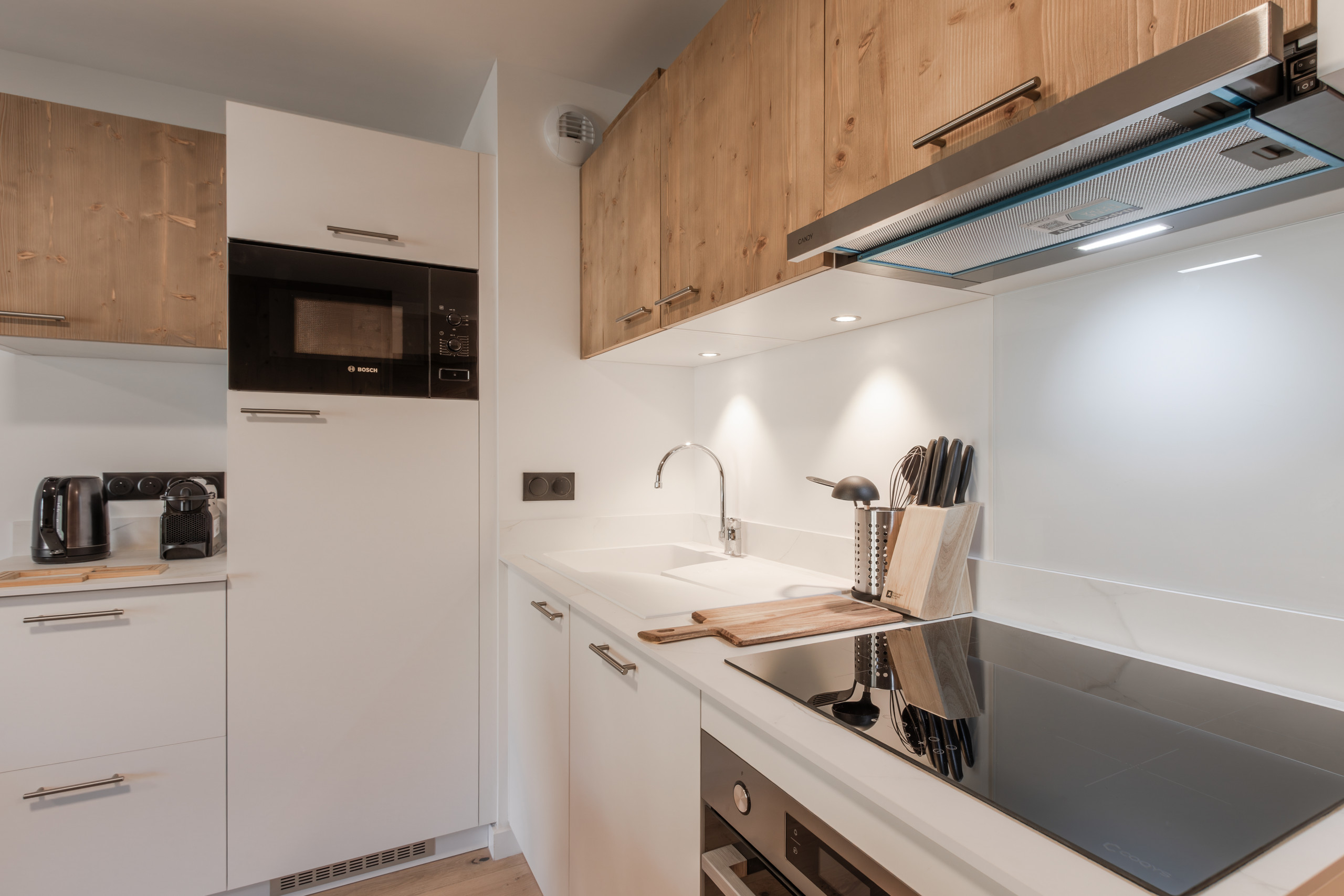 The kitchen is fully equipped with all the essentials for preparing meals.