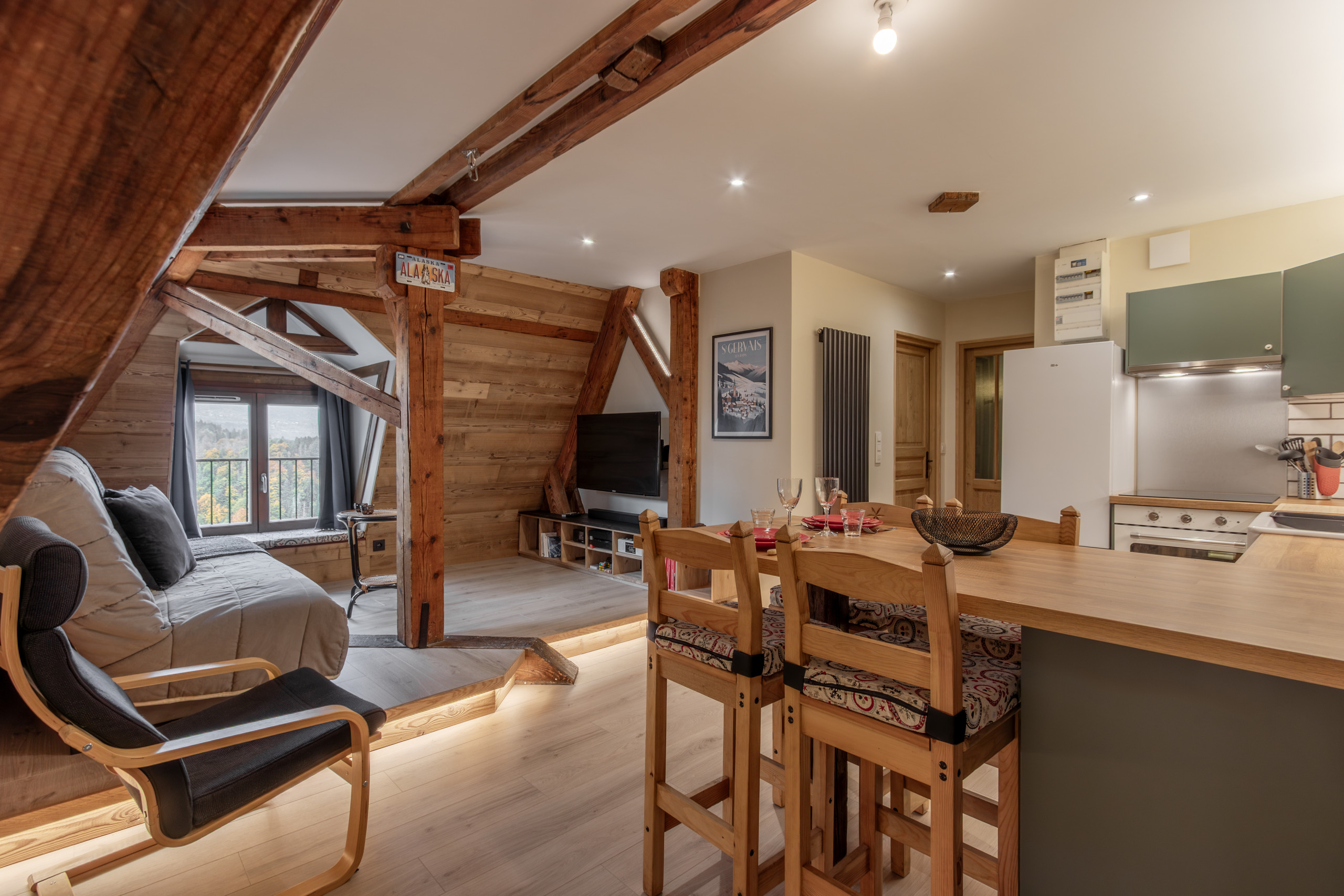 The Marquise offers a renovated apartment in a recently restored building, with a superb view of the Aravis massif and the Arve valley. Only 200 m from the new thermal lift leading to the Saint-Gervais thermal baths and park, 5 minutes walk from the centre and 10 minutes from the Châtelet station directly connecting the ski lifts and SNCF station. An ideal pied-à-terre to enjoy Saint-Gervais all year round, between comfort, nature and soft mobility.
