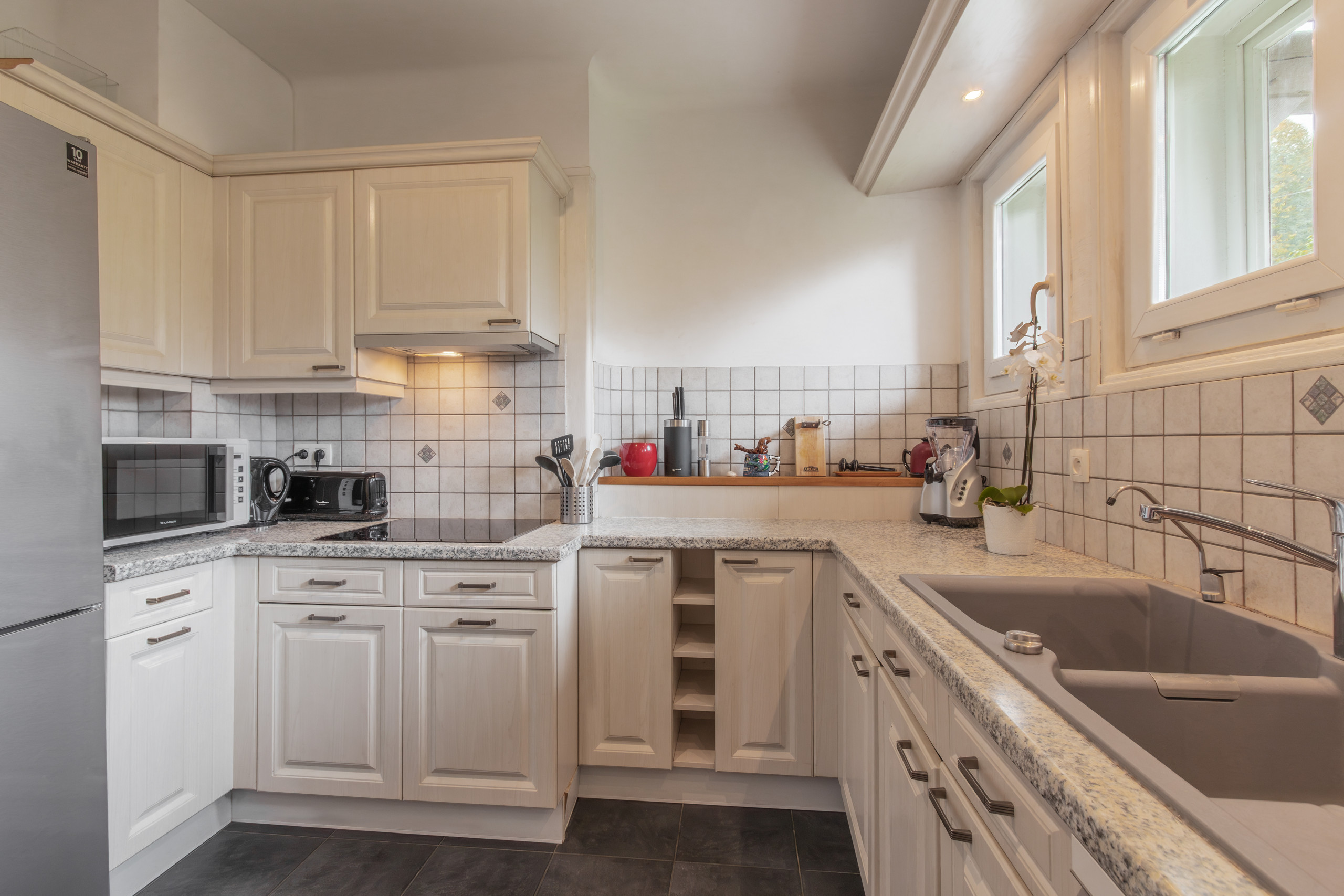 The kitchen is fully equipped with all the essentials for preparing meals.