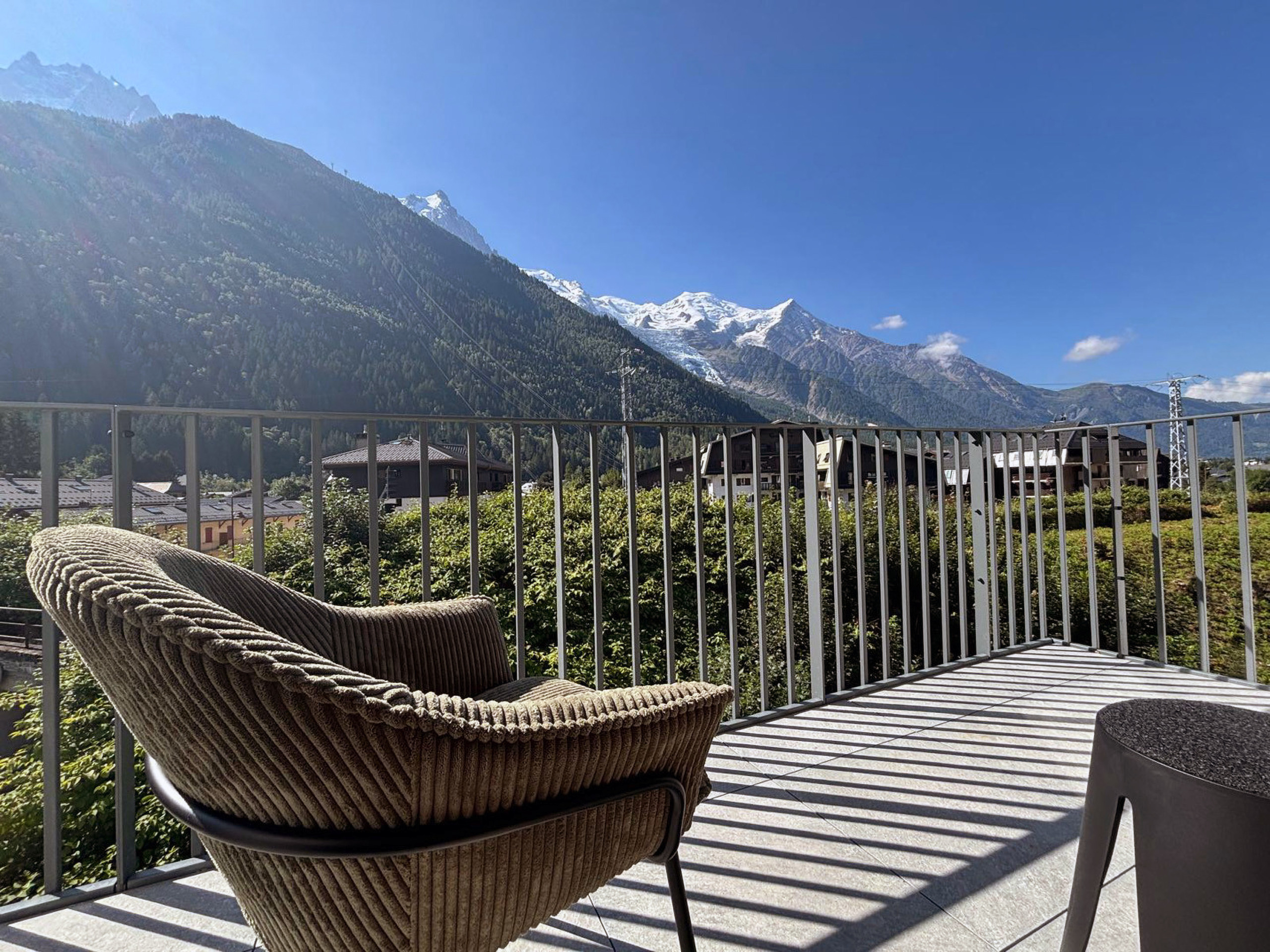 Profitez de la vue panoramique sur le Mont-Blanc sur une terrasse qui s'ouvre de plain-pied sur le domaine Savoy.