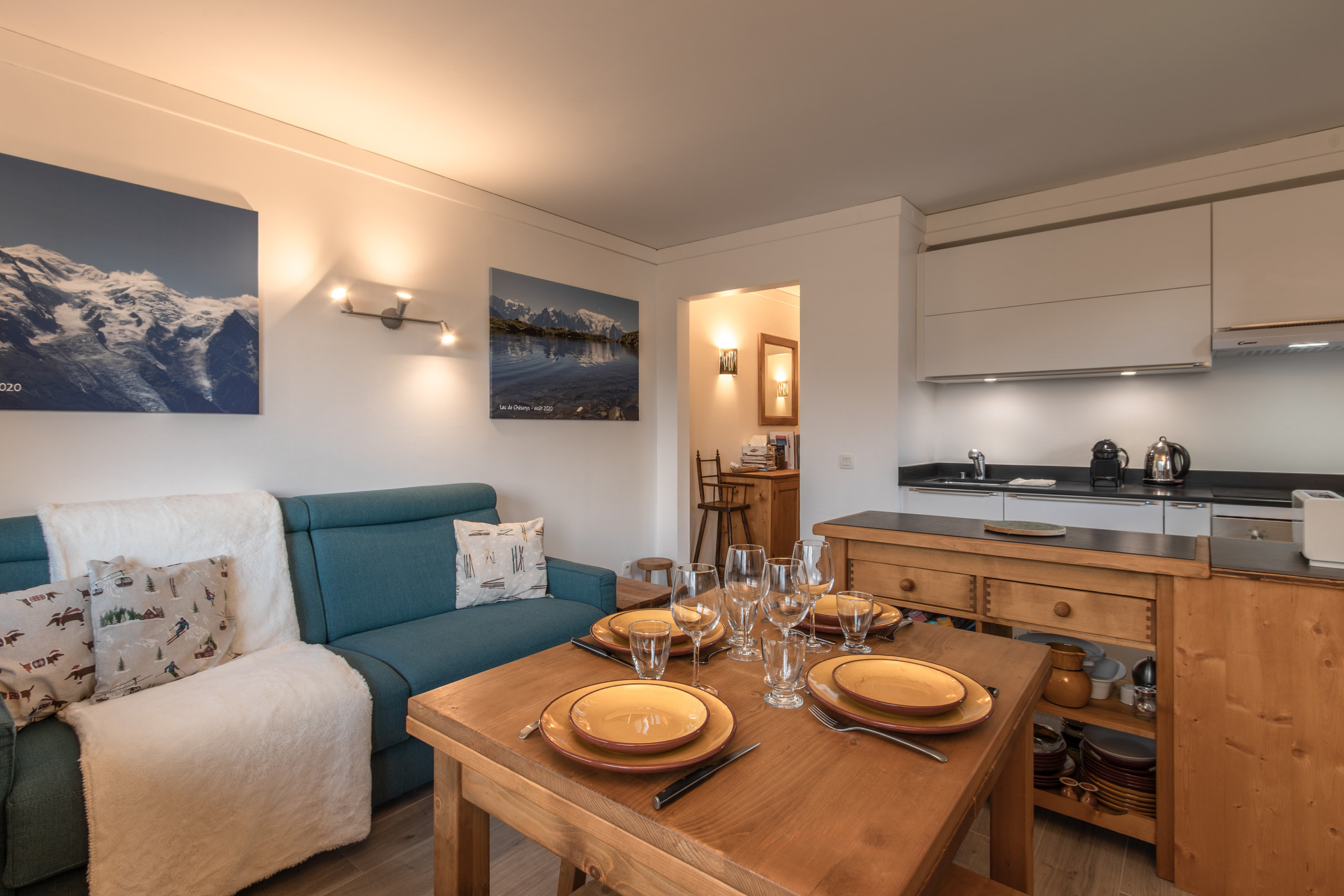 L'appartement est un T2, d'un esprit montagnard. Le balcon de 10m2 vous offre un magnifique panorama.