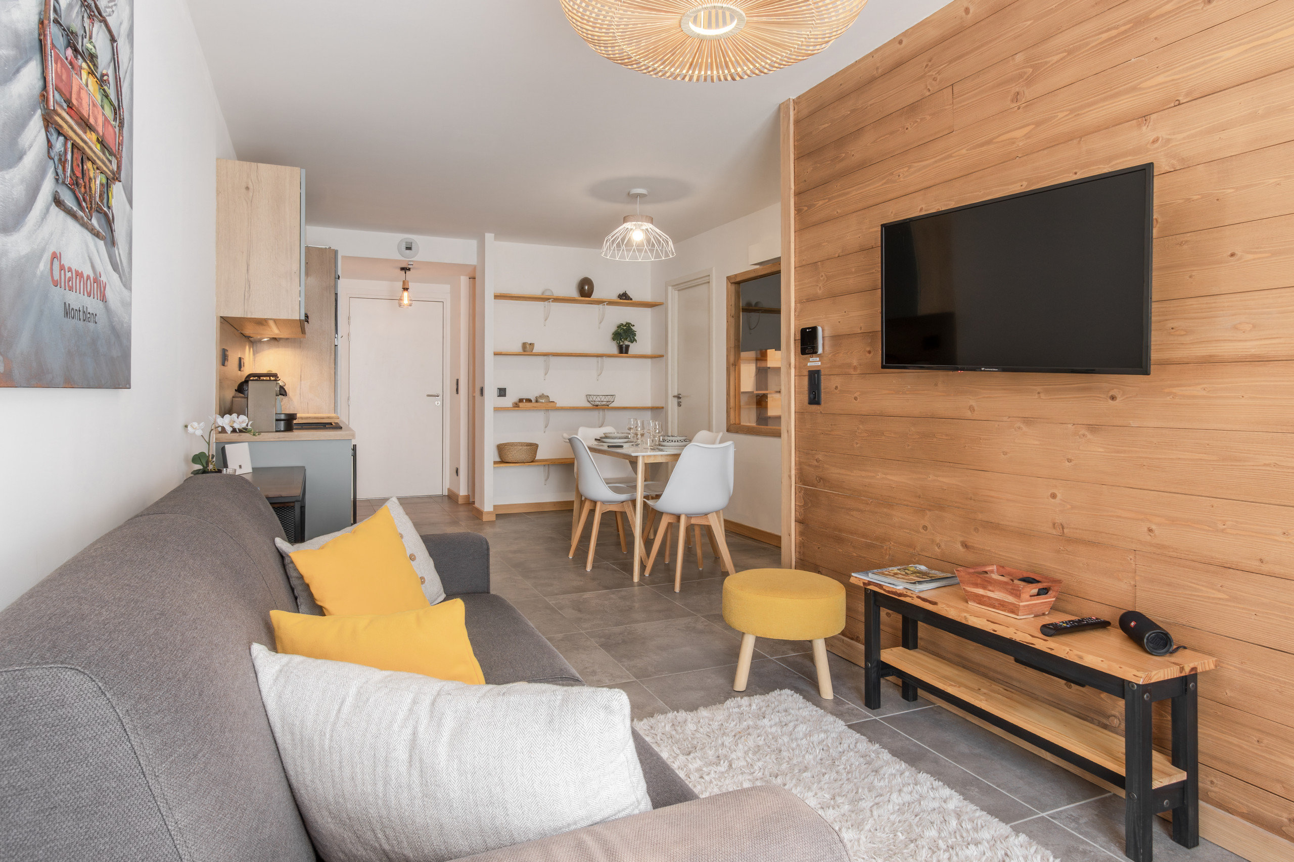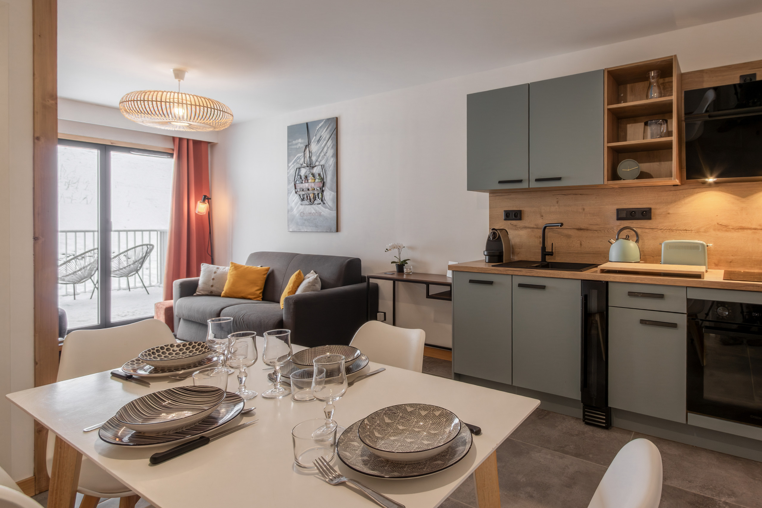 L'appartement est un T2, d'un esprit montagnard. Le balcon de 10m2 vous offre un magnifique panorama.