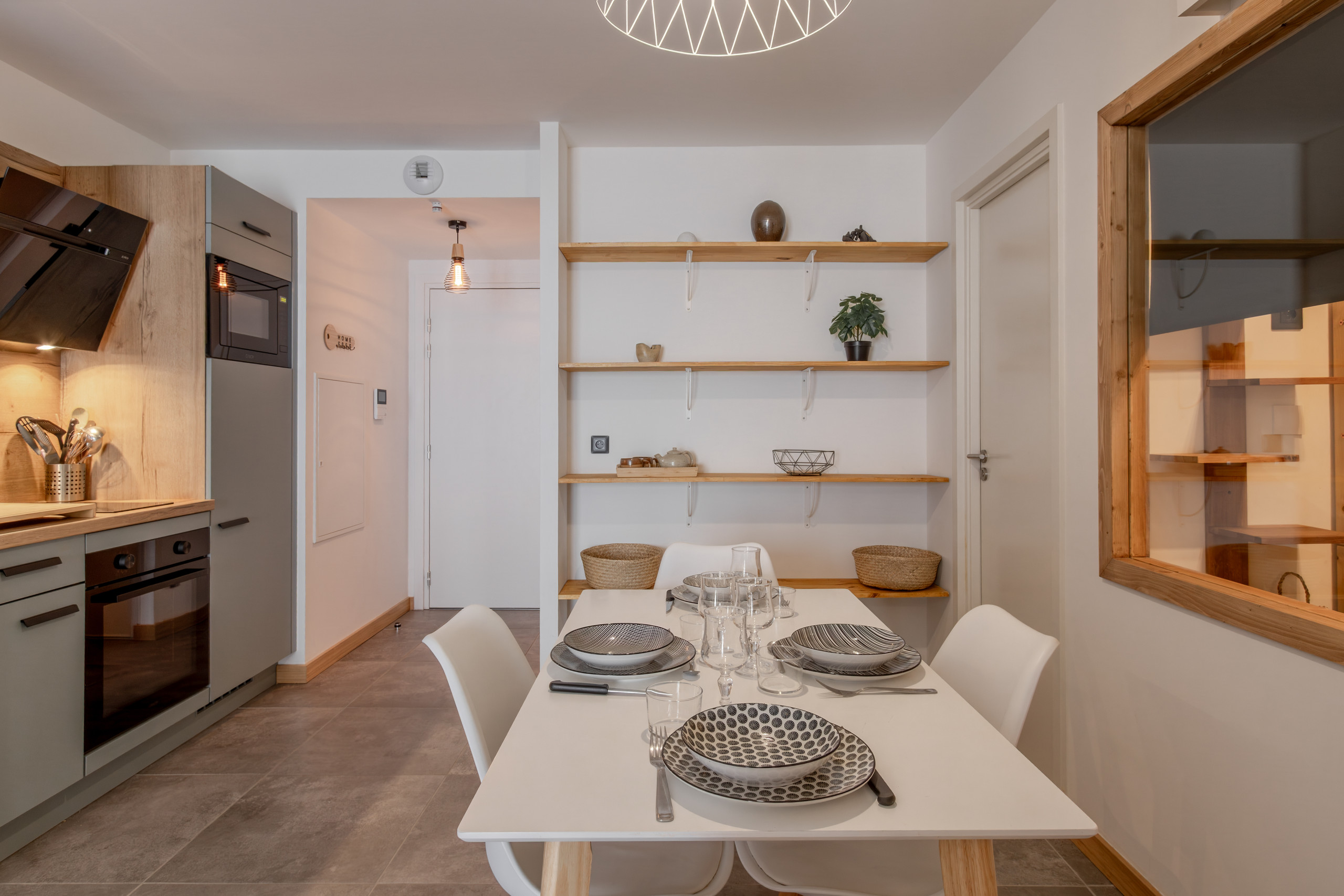 Le salon et la salle à manger sont dans la même zone. La table peut accueillir 4 personnes -