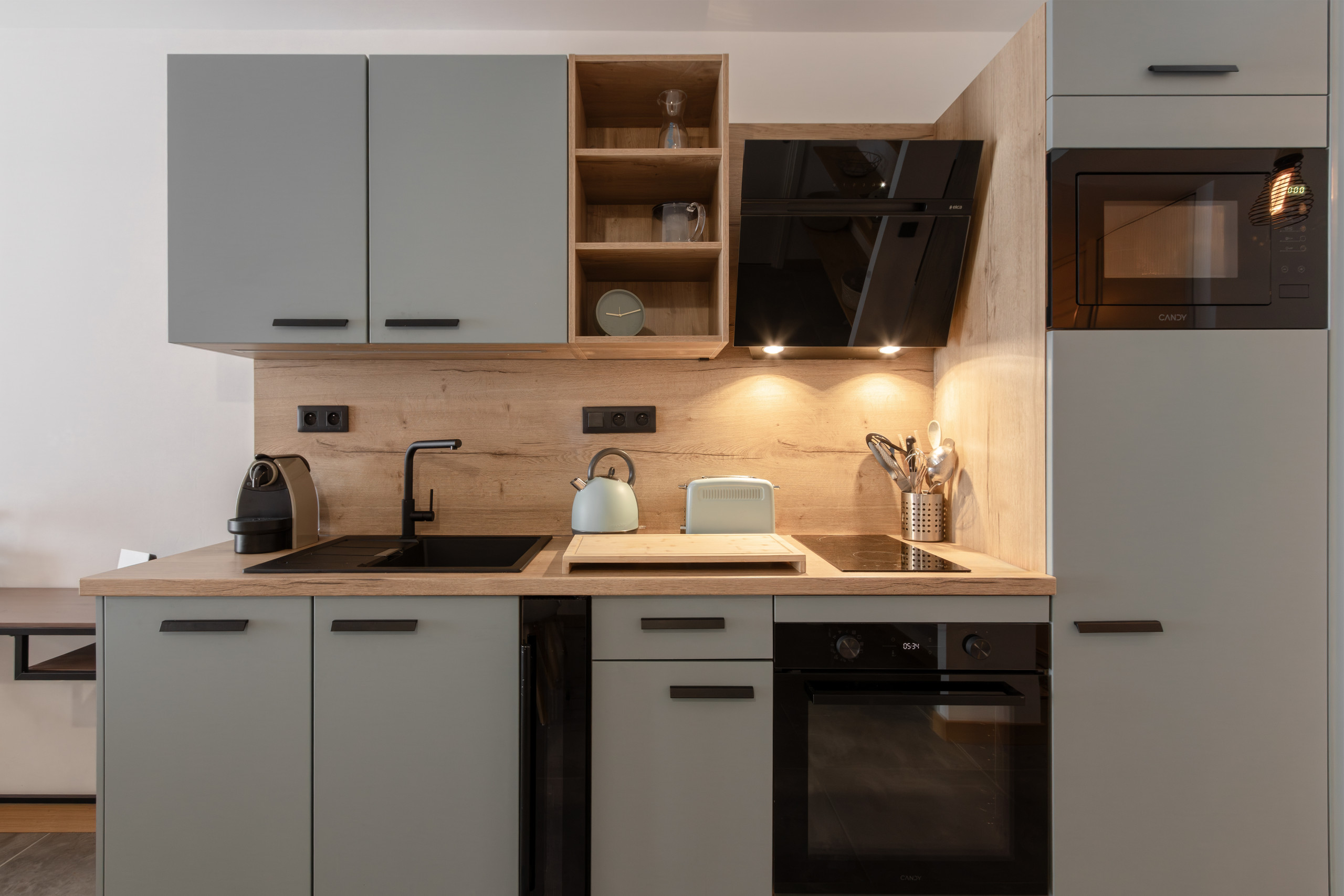 La cuisine est entièrement équipée avec tous les éléments essentiels pour préparer les repas.