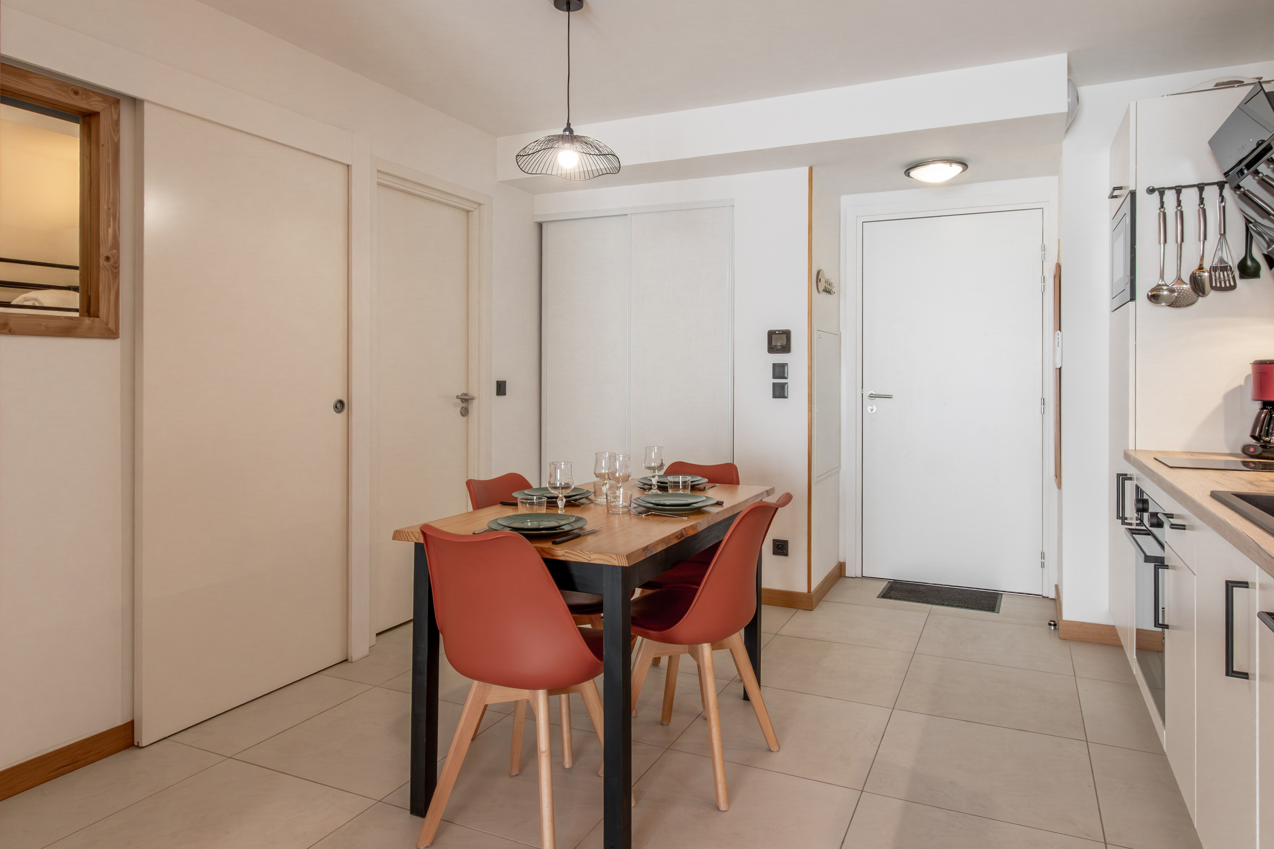 Le salon et la salle à manger sont dans la même zone. La table peut accueillir 4 personnes -
