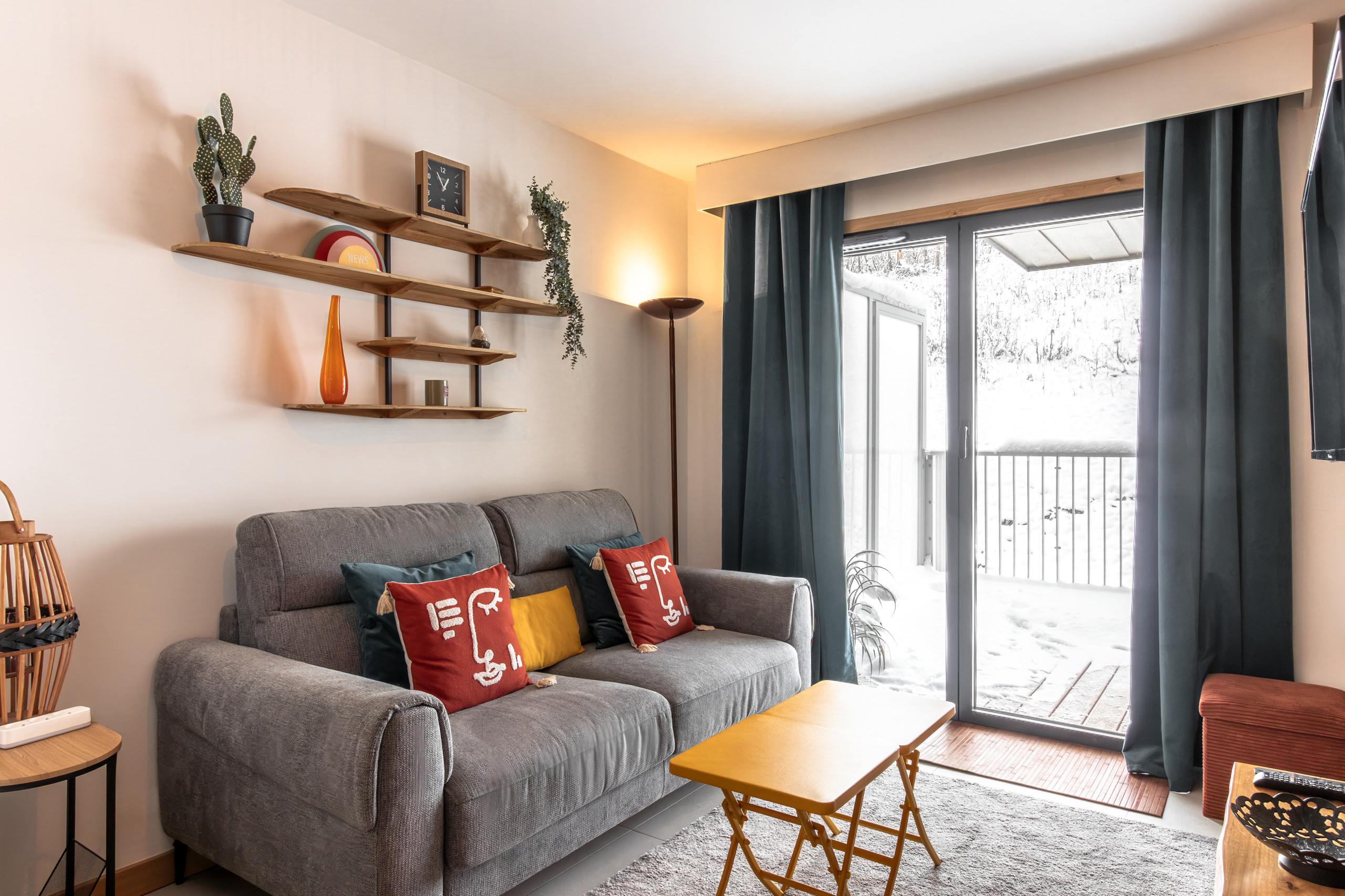 L'appartement est un T2, d'un esprit montagnard. Le balcon de 10m2 vous offre un magnifique panorama.