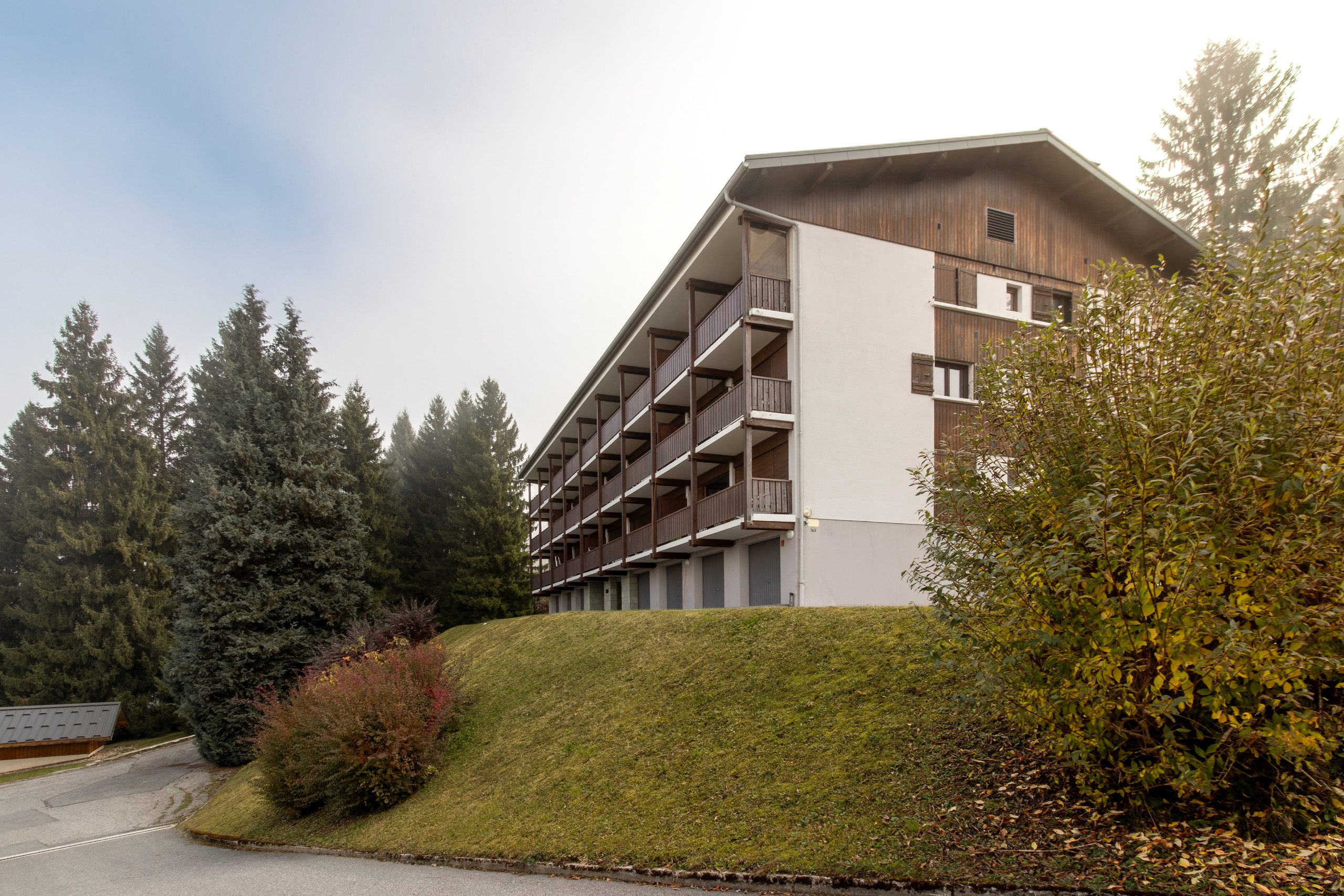 dans une petite résidence située à 5 minutes à pied du centre village et juste en face des arrêts ski-bus.