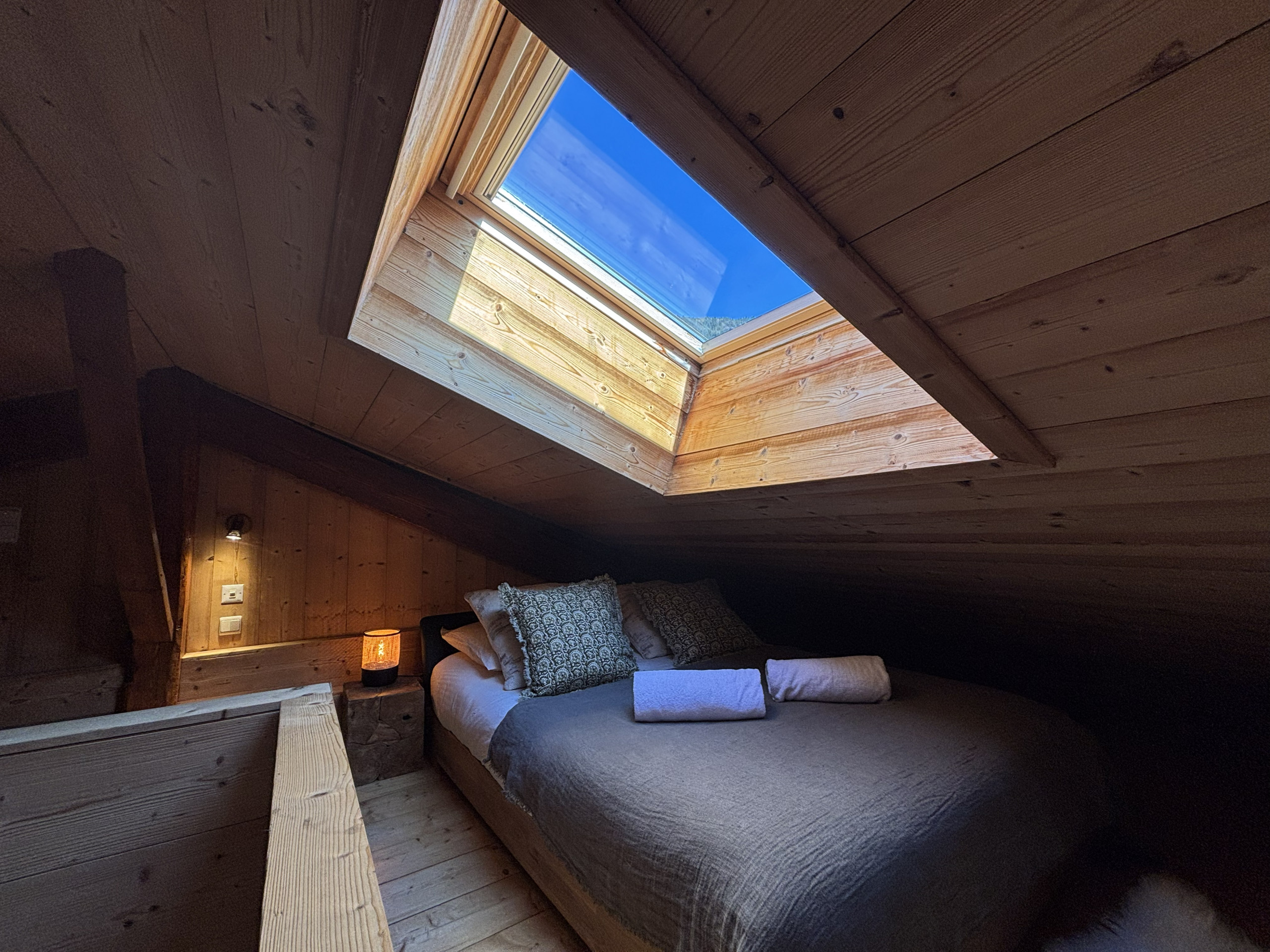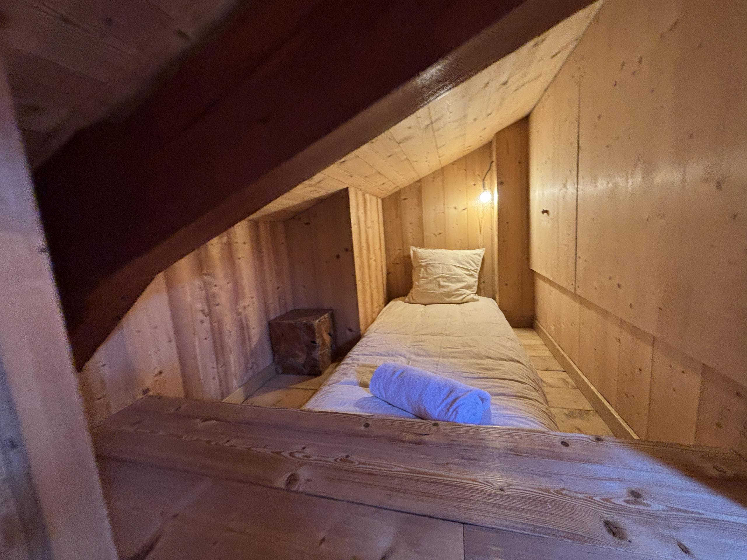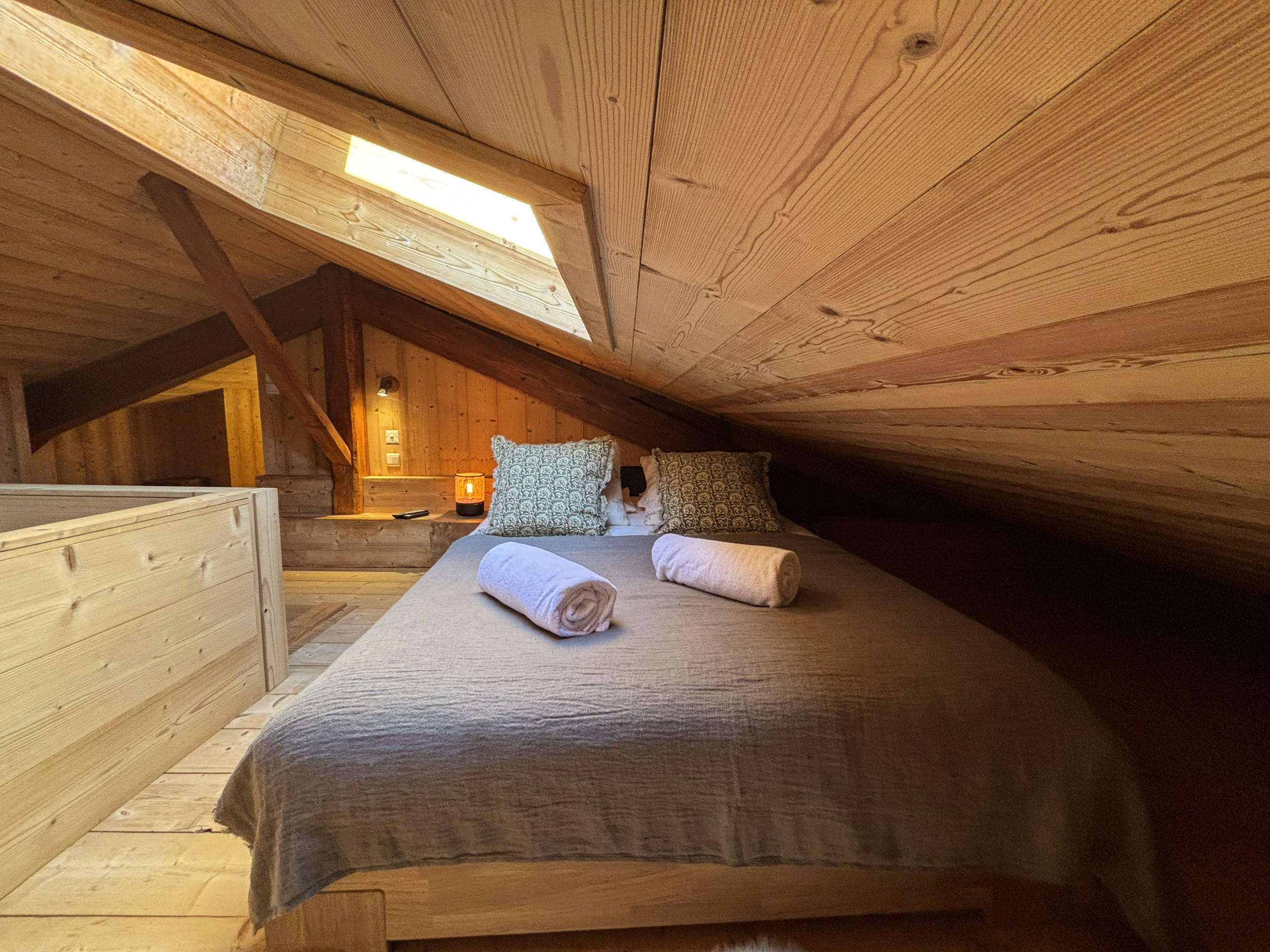 1 mezzanine - Important : C'est le niveau supérieur et se trouve sous le toit. Il y a : 1 lit double et 2 lits simples