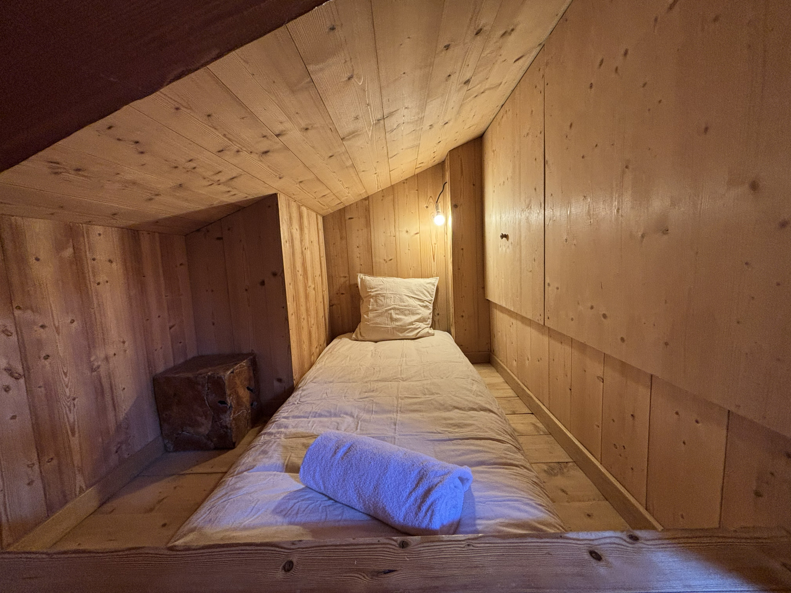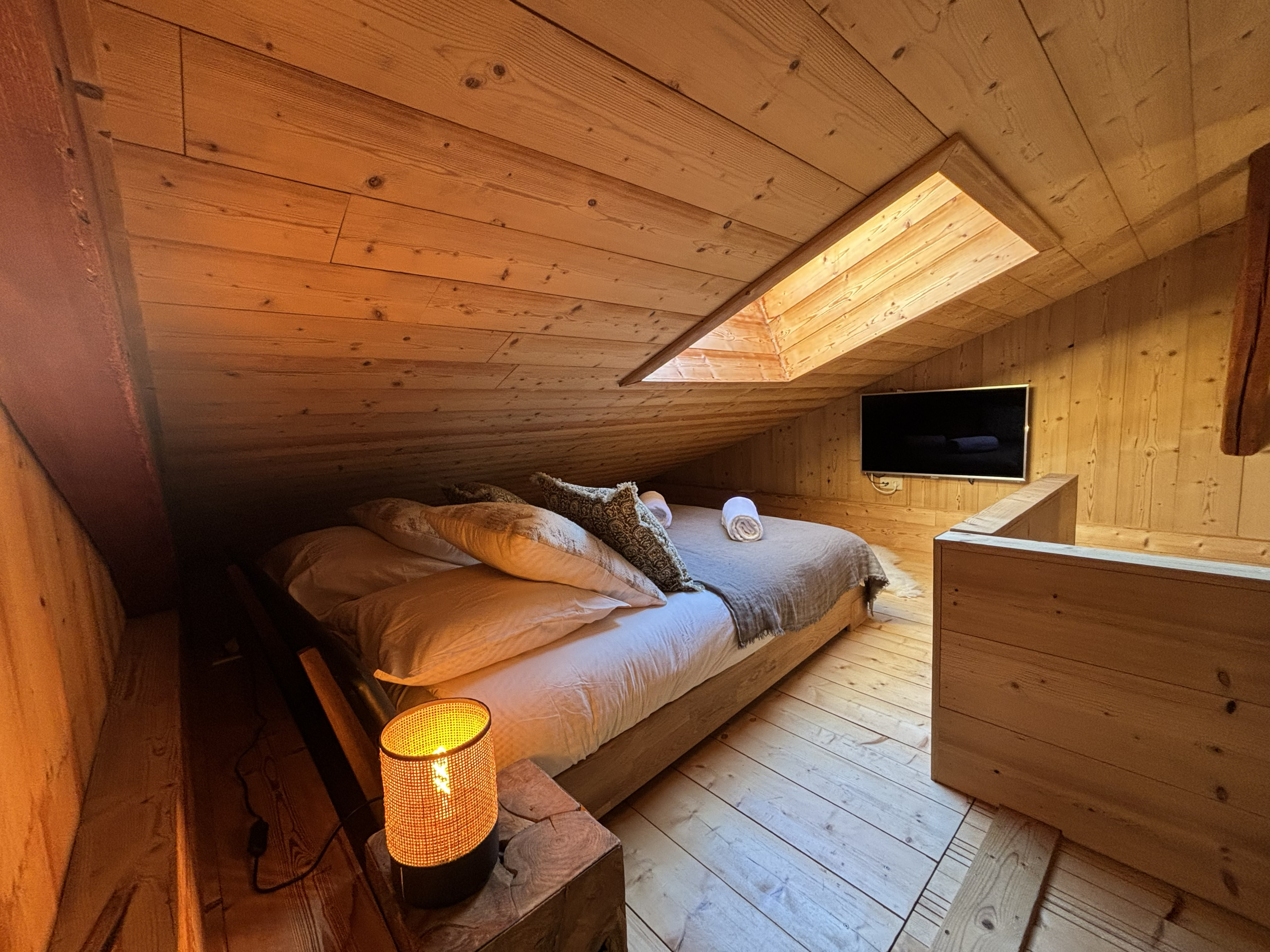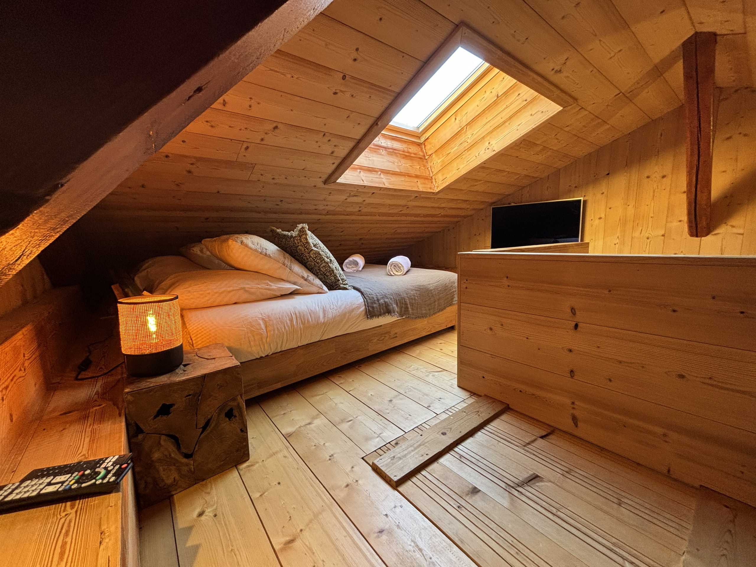1 mezzanine - Important : C'est le niveau supérieur et se trouve sous le toit. Il y a : 1 lit double et 2 lits simples