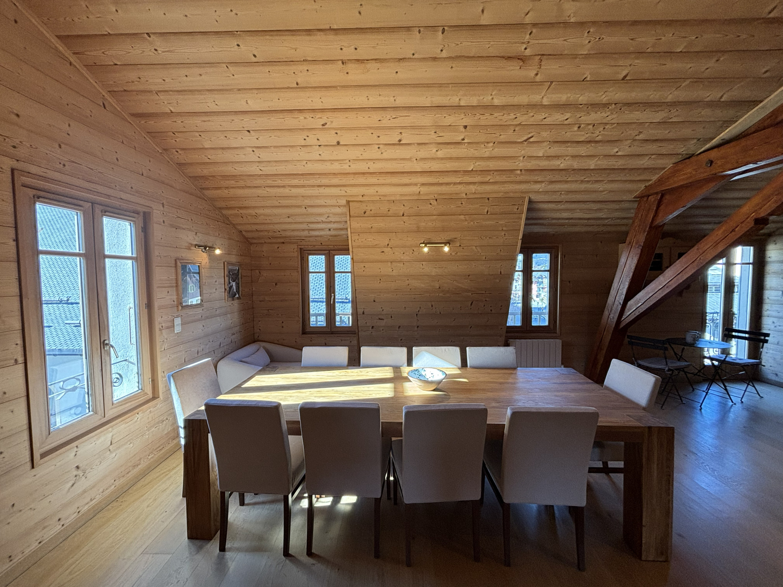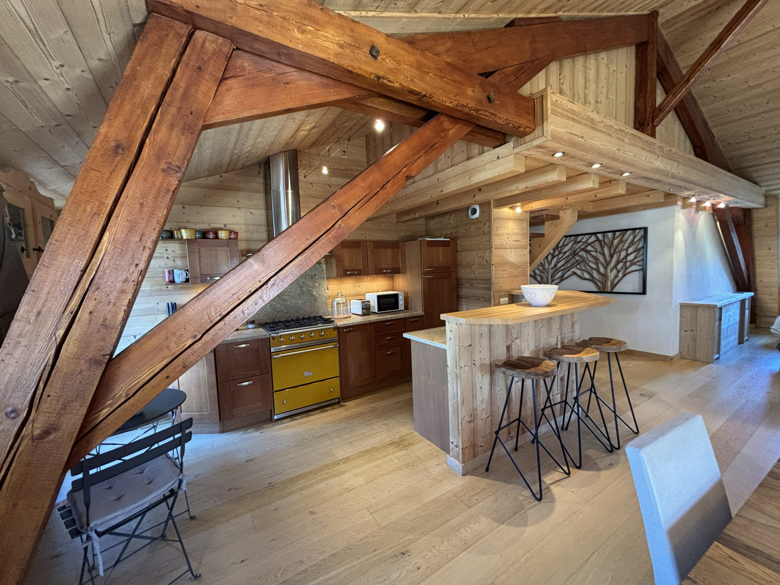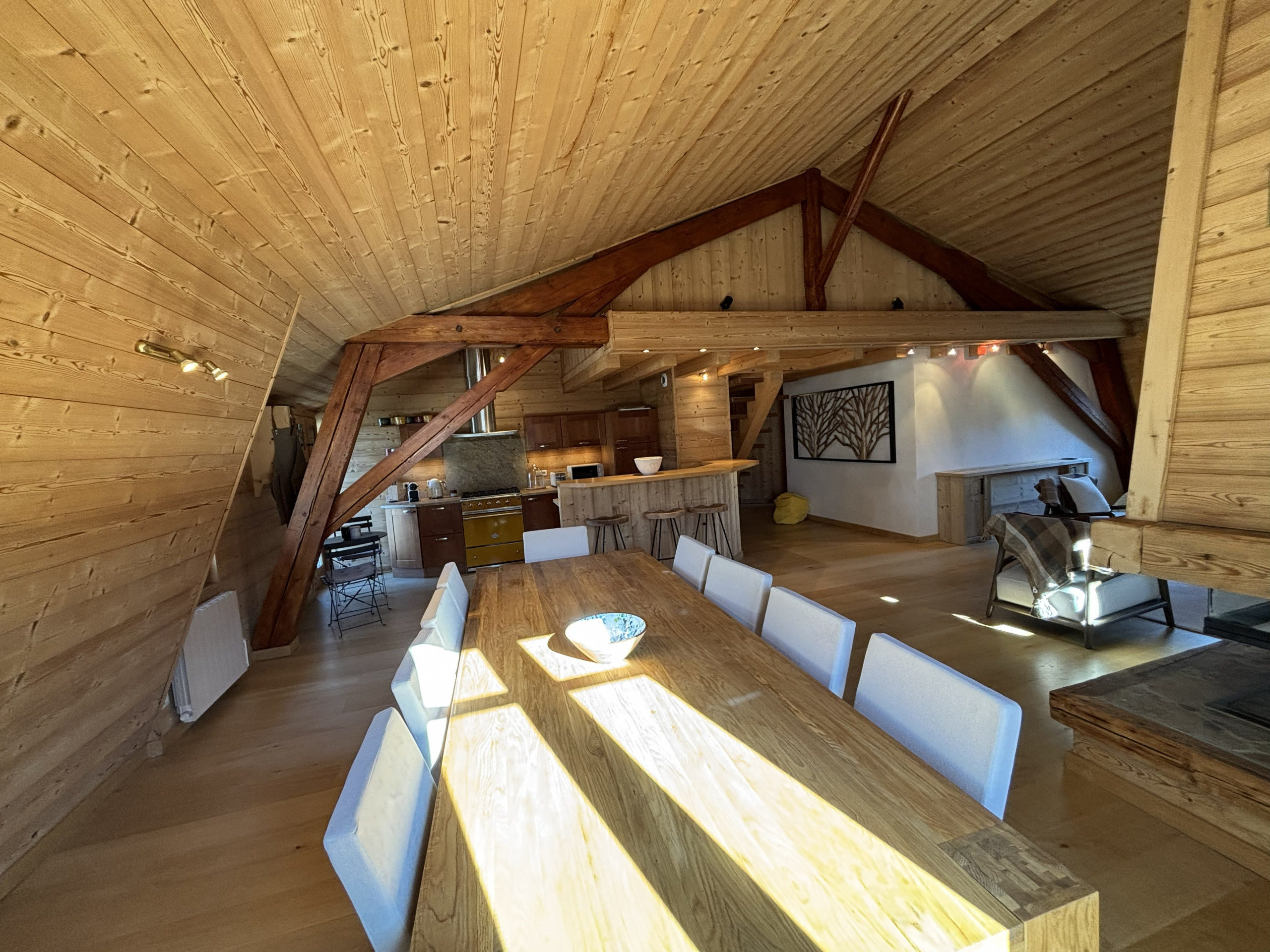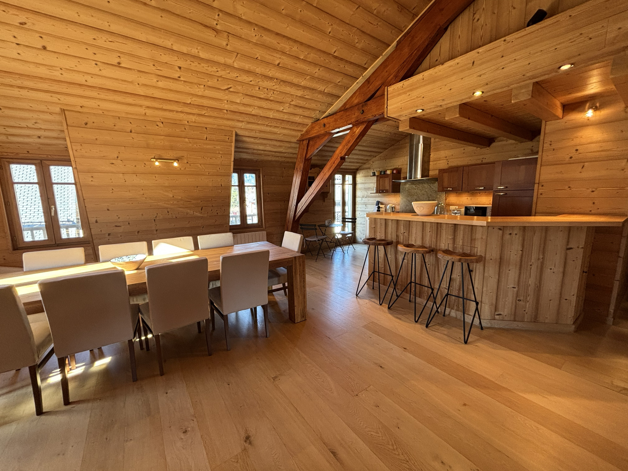 Bienvenue dans cet appartement de standing au cœur de Saint-Gervais-les-Bains, idéalement situé à quelques pas des restaurants, commerces et de l’animation du centre. Niché au dernier étage, ce spacieux 80 m² avec 2 chambres et une mezzanine offre une vue dégagée depuis chaque pièce. Entièrement habillé de bois et décoré avec élégance, il allie charme alpin et confort moderne. Son grand séjour avec espace repas est parfait pour partager des moments conviviaux en famille ou entre amis après une journée en montagne.