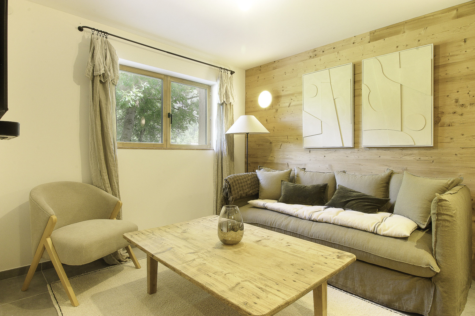 Le chalet est composé de trois étages et divisé en deux espaces distincts. Le RDC comprend un appart indépendant (Le Petit Béchar). pouvant accueillir jusqu'à 2 personnes. Le premier étage et le deuxième étage forment un demi chalet indépendant (Le Gros Béchar). Un accès extérieur vers la terrasse et le jardin offre une vue panoramique sur la chaîne du Mt Blanc et un accès au Sauna et Jacuzzi extérieurs. Ce chalet est idéal pour les familles ou les groupes d'amis.