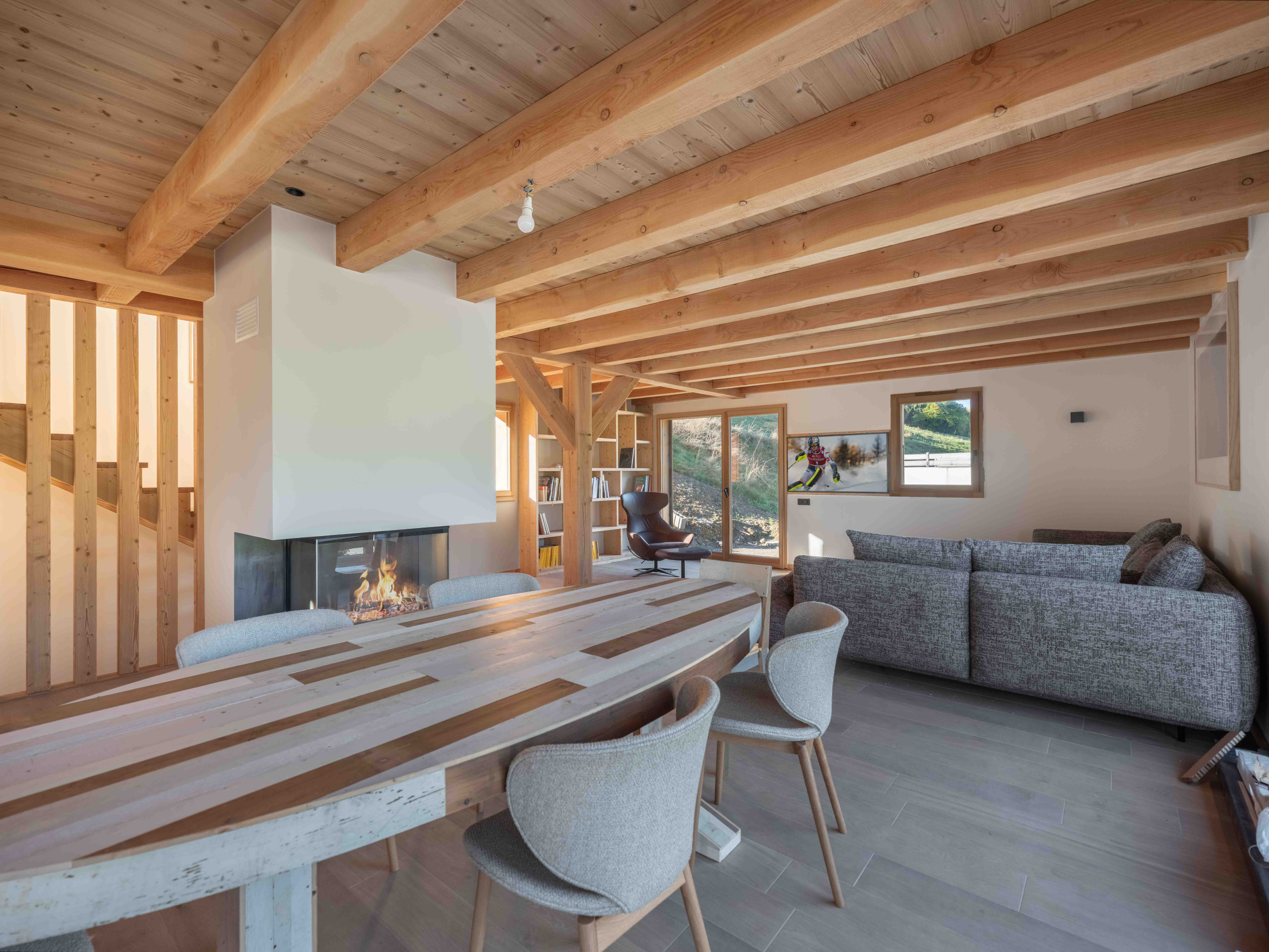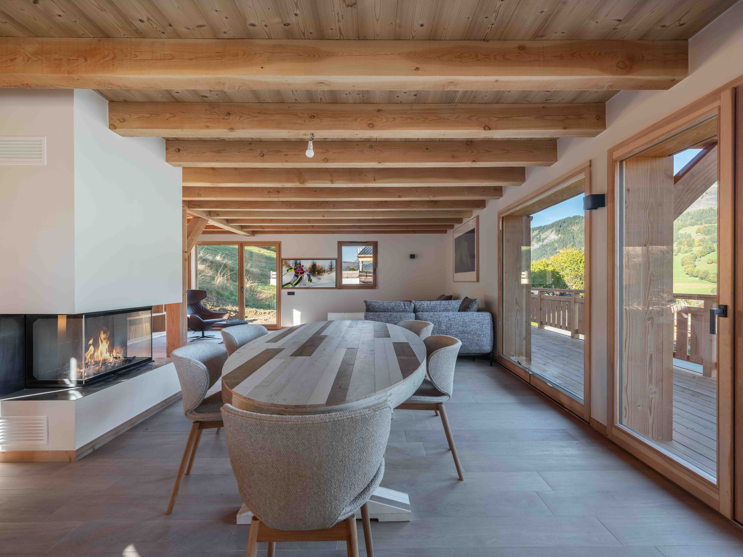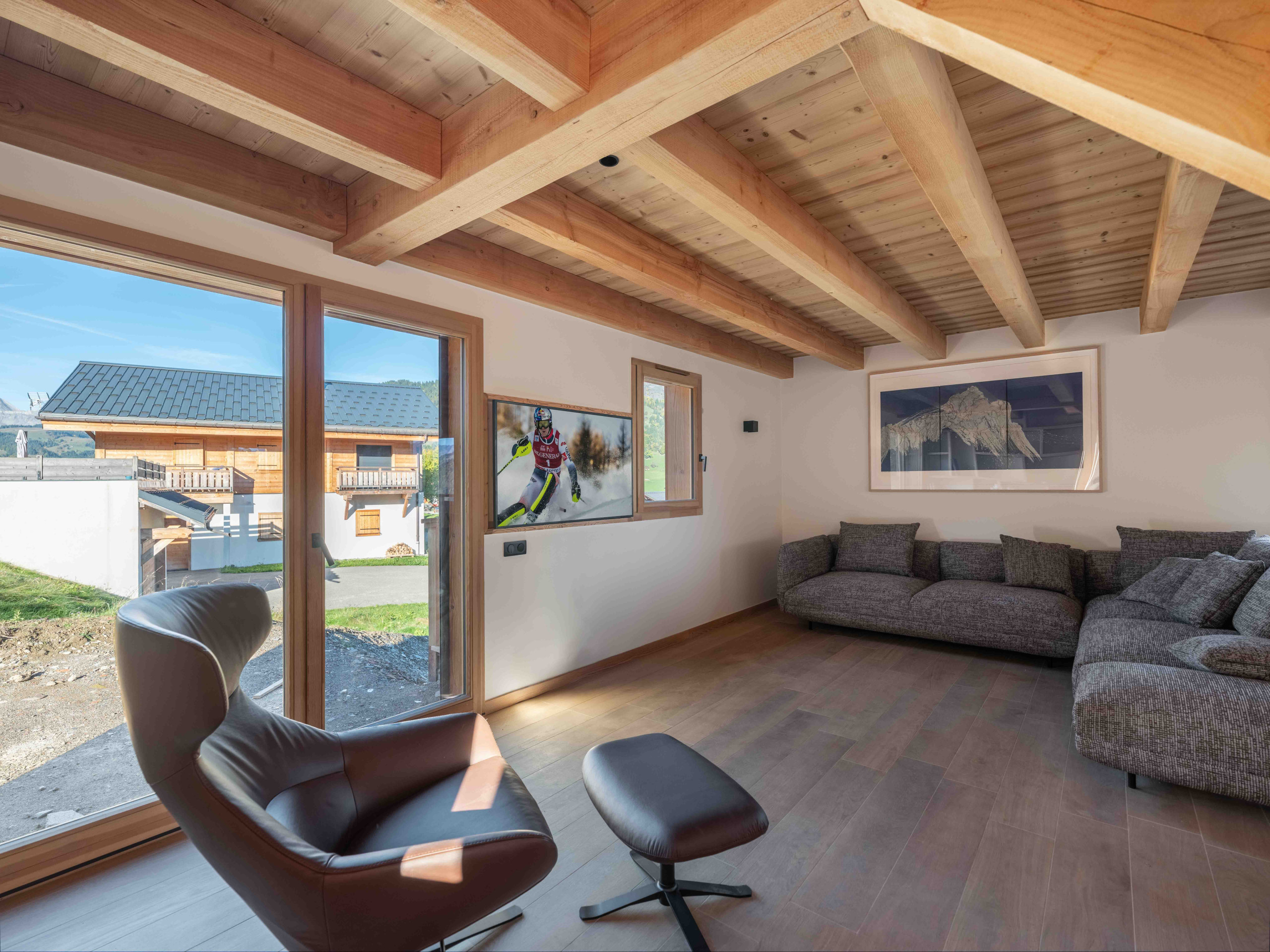 Bordé à l'arrière par des prairies et une forêt, le chalet bénéficie d'un cadre naturel préservé : suffisamment proche pour profiter pleinement des pistes de ski, des commerces et des activités, mais suffisamment à l'écart pour savourer un calme absolu. Situé à seulement 5 minutes de Megève, il offre une escapade alpine inoubliable, où authenticité, confort et grands espaces se rejoignent.